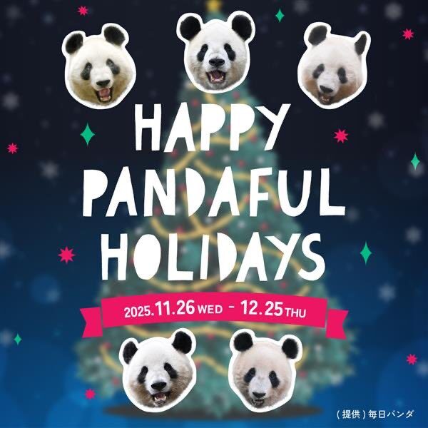 松坂屋上野店で開催されるHAPPY PANDAFUL HOLIDAYSは、パンダをテーマにしたクリスマスイベントで、昭和レトロな世界観を取り入れた特別なホリデー装飾と限定企画が登場します。期間中はパンダ×レトロの館内デコレーション、限定ノベルティ、スタンプラリー、スペシャルグッズ、レトロフード特集、アプリ会員限定のガラポン抽選会など、多彩なコンテンツを楽しめる構成です。受注販売のパンダグッズや限定フード、イートイン企画、オンライン販売など幅広い楽しみ方ができ、上野ならではの“パンダフル”なクリスマス気分を満喫できるイベントとなっています。