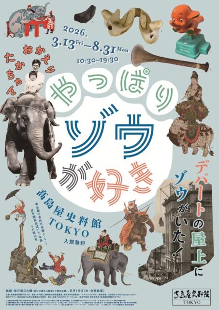 東京・日本橋で3月に開催される展示イベントとして、高島屋史料館 TOKYO 4階展示室を会場に実施されるやっぱりゾウが好き――デパートの屋上にゾウがいた!は、戦後の日本橋高島屋の屋上で暮らしていたゾウのたかちゃんを起点に、ゾウと日本人の歴史をたどる展覧会です。